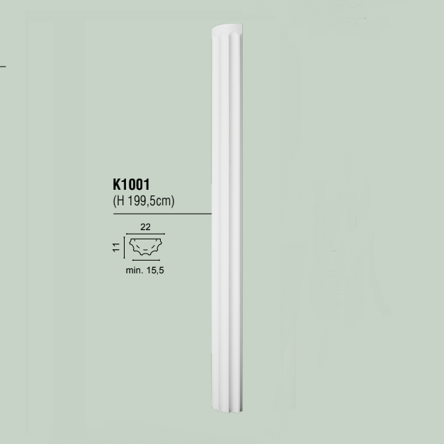 Полуколонна с каннелюрами. Комплектуется с полукапителями K1111 и K1121, а также полуоснованиями K1151 и K1131.